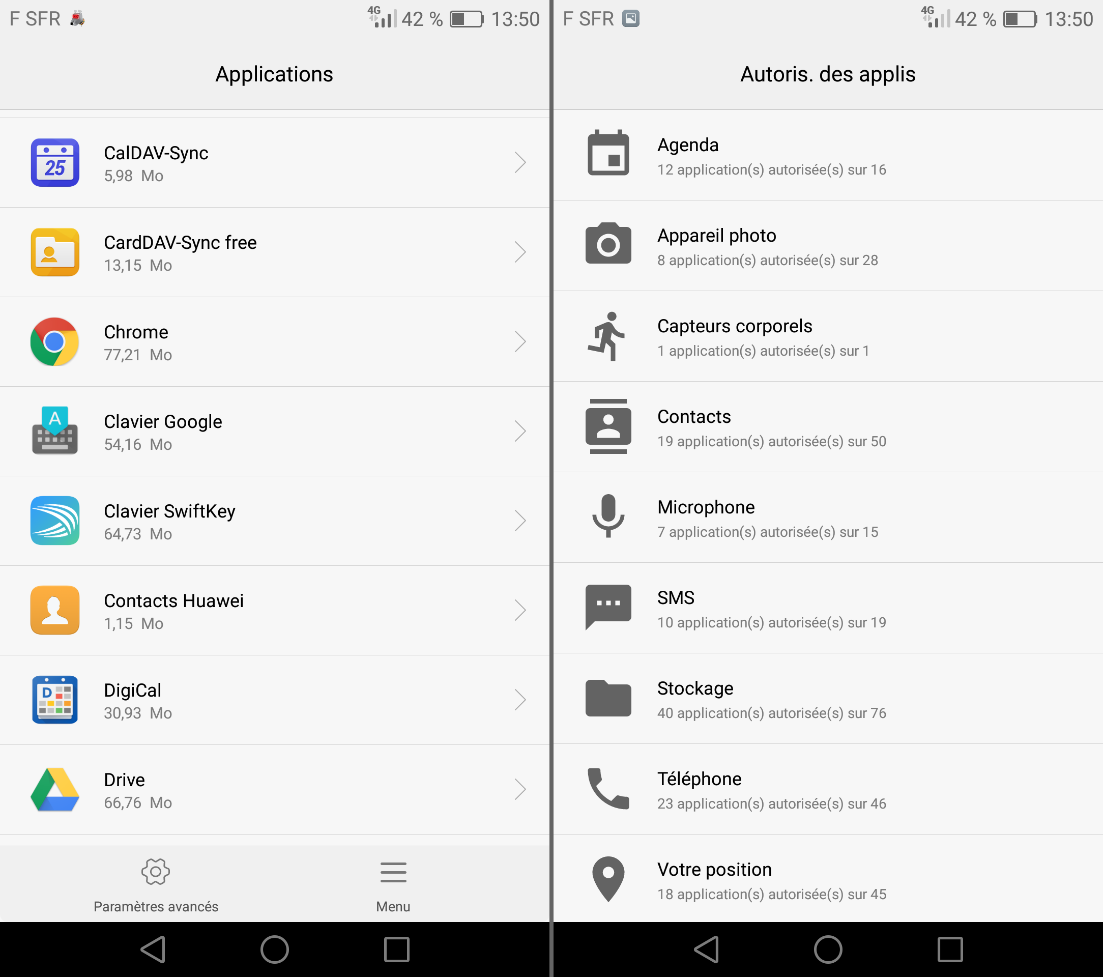 Concrètement, pour obtenir une synchronisation de ma messagerie – n’utilisant pas gmail – j’ai longtemps cherché en vain du côté de la configuration du courrielleur K9-mail installé par mes soins mais c’est dans l’option de configuration de la batterie qu’il fallait aller regarder : Paramètres -> Paramètres avancés -> Gestion de la batterie -> Applications protégées. Il a fallu tout aussi bien autoriser les interfaces de connexion à mon serveur owncloud CardDav et CalDav dans cette section afin que mon calendrier (agenda) et mes contacts se synchronisent en arrière plan lorsque l’appareil est en veille. Et ce n’est pas encore parfait.