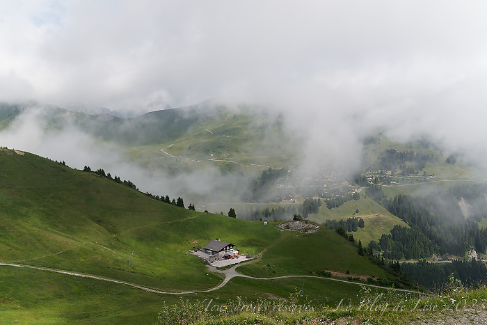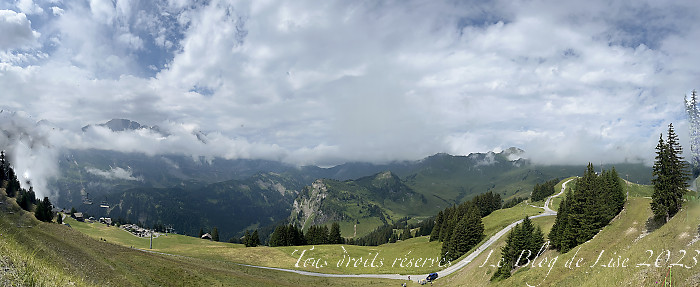 Nous sommes monté.e.s en télécabine à Planachaux, mais le temps était bien brumeux ! J’ai ensuite fait un tour dans le village, typique de l’image qu’on a des villages suisses 🙂