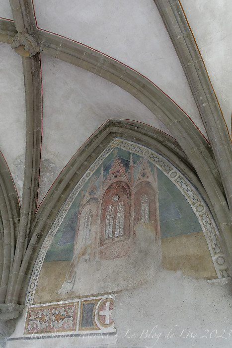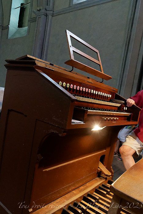 Le jour suivant, après avoir participé, à Châtel, à une présentation autour des cloches, éléments typiques des vallées alpines, aussi bien dans les différentes chapelles qu’autour du cou des vaches 🙂 je me suis rendue à l’abbaye d’Abondance (1). J’ai photographié quelques-unes des peintures murales, avant d’écouter l’organiste (qui exerce dans la ville voisine de la mienne, Ivry-sur-Seine), nous expliquer le fonctionnement de l’orgue, avec de nombreux exemples à l’appui ; nous avons assisté ensuite à un concert, de Couperin à César Franck, Bach, Brahms… Un super moment de détente ! très instructif !