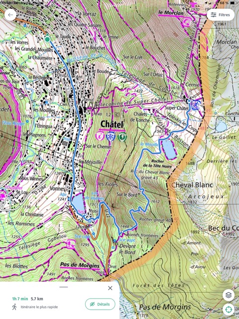 Une alerte orange aux orages ayant été annoncée pour le milieu de l’après-midi, j’avais prévu un parcours pas trop dans les hauteurs jusqu’aux Chalets de Plaine Dranse.