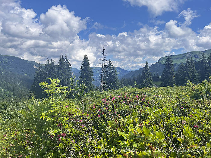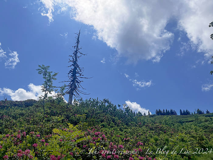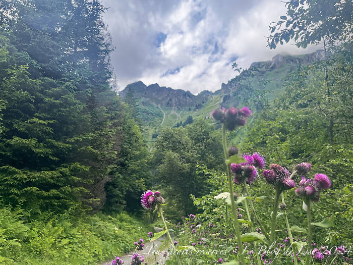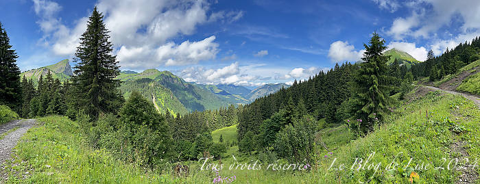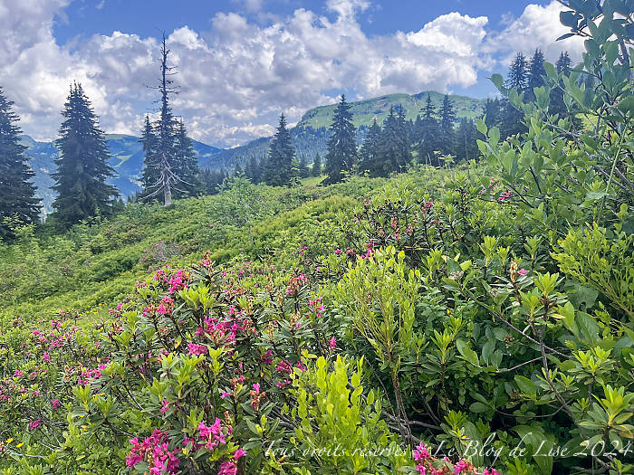 Je suis montée depuis Pré-la-Joux au col de Bassachaux en suivant les pistes de ski. Arrivée au col, j’ai poursuivi mon chemin jusqu’à avoir une vue sur le lac de Montriond, avant de redescendre par un sentier, certes escarpé, mais très sympa, traversant la forêt et quelques champs de rhododendrons.