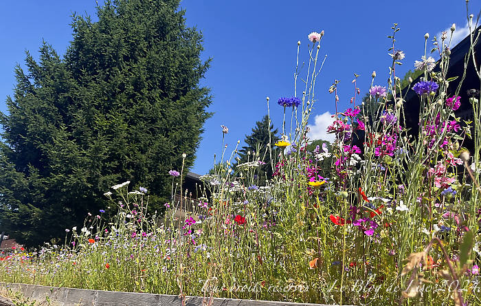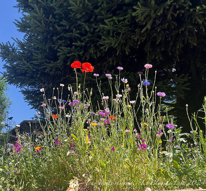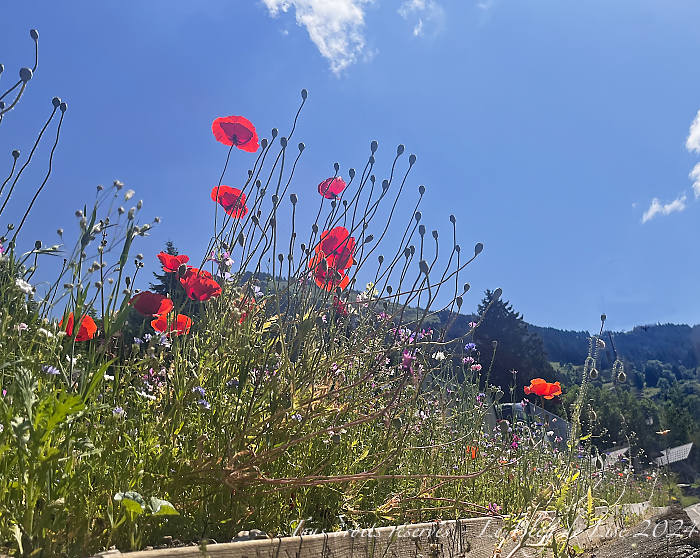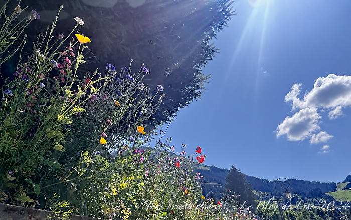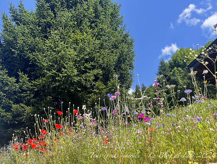 Pour me rendre à la ferme pour acheter du fromage d’Abondance, j’ai longé un court moment la route de Thonon, égayée par quelques fleurs des champs, mais en réalité semées par l’homme !