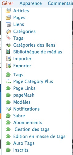 L’interface est similaire, le plugin permet d’accéder directement aux différents items depuis la barre de menu.