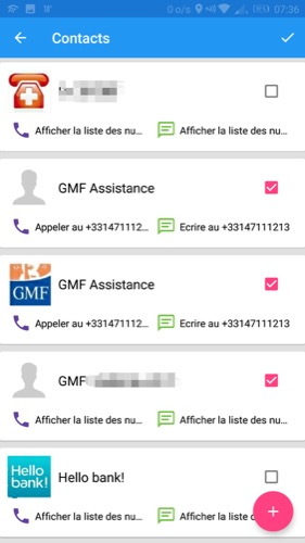 Pour ajouter un ou des contacts, il faut effectuer un tap sur le +, puis le (ou les) sélectionner dans la liste. Une fois le groupe constitué, de nombreux paramètres sont disponibles :