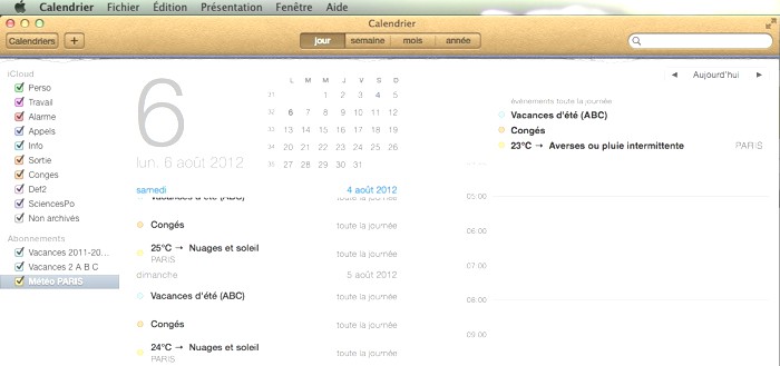 A la suite de mes essais avec la synchronisation iCloud et les différents abonnements aux calendriers, j’ai voulu voir ce qu’affichaient les calendriers météo.