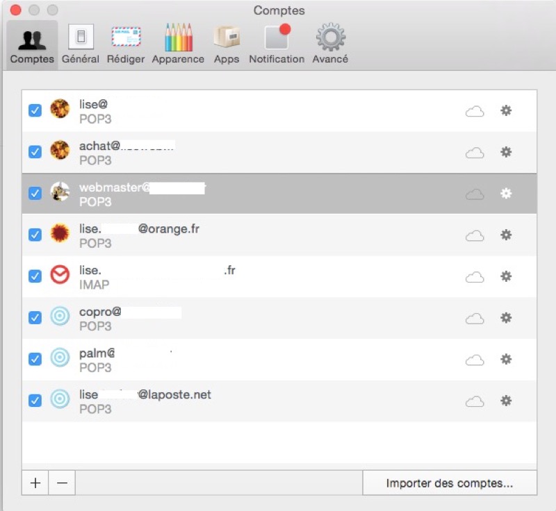 Dans la barre latérale, on peut choisir d’afficher un seul compte ou tous les comptes. Cette option est accessible avec une combinaison de touches : Ctrl + le numéro de compte. On peut classer l’ordre d’affichage des comptes depuis les Préférences.