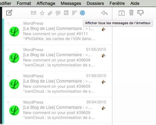 Cette barre d’outils est également disponible lorsqu’on affiche les messages de toutes les boîtes.