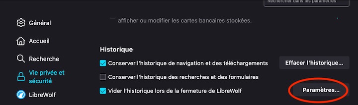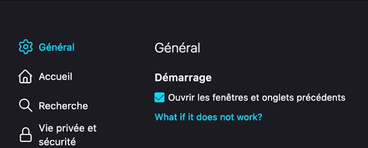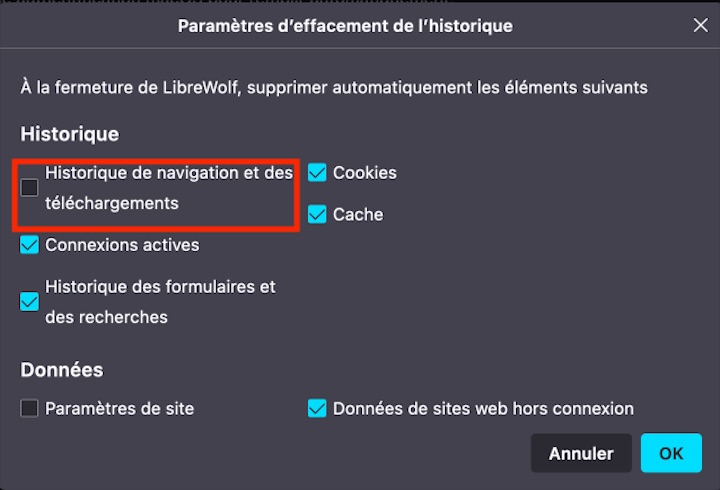Par défaut, les pages en cours de consultation sont closes à la fermeture de LibreWolf