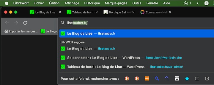 J’ai installé LibreWolf, ce fork de Mozilla, souhaitant disposer d’un navigateur alliant sécurité/confidentialité et quelques fonctionnalités supplémentaires par rapport au navigateur DuckDuckGo (1).