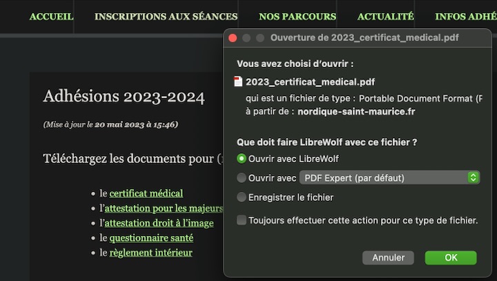 Si l’on a décoché la case Historique de navigation et des téléchargements et que l’on choisit de consulter les fichiers liés dans le navigateur, ces derniers sont tous enregistrés dans le répertoire de téléchargement.