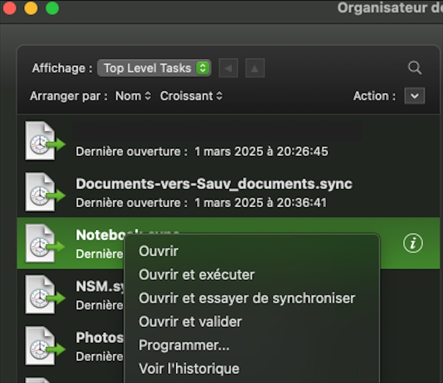 - de programmer des sauvegardes ; en utilisant le gestionnaire de tâches programmées, on peut même lancer toutes les synchronisations simultanément.