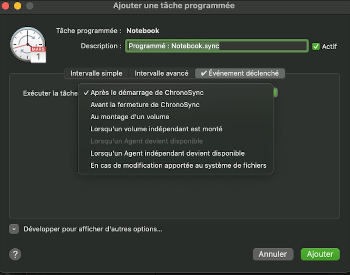 J’utilisais à l’origine Chronosync pour synchroniser mes fichiers entre deux Macs – puisque à l’époque, je ne disposais pas de nuage ! – et effectuer des sauvegardes1Voir les articles