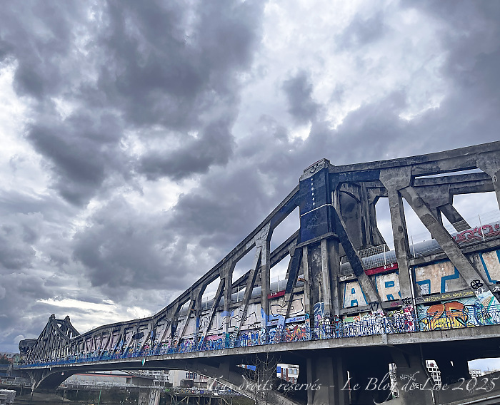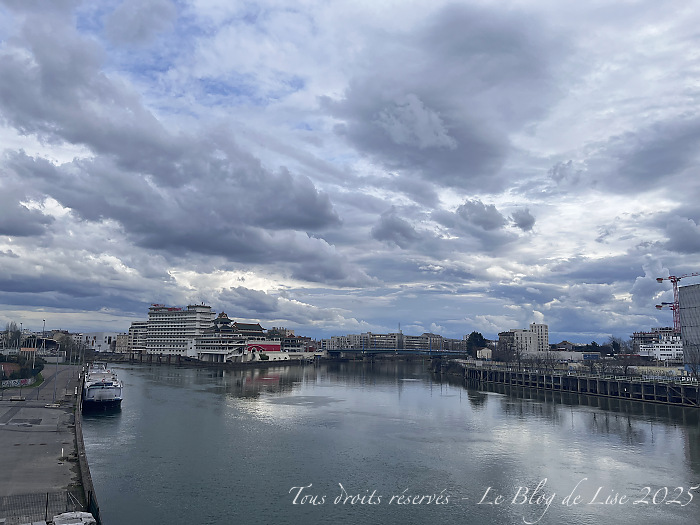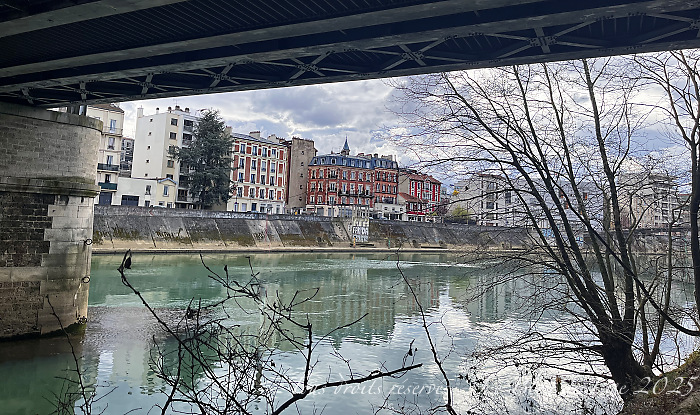 À l’aller, j’ai longé la Marne jusqu’au confluent avec la Seine, au retour, je l’ai suivie sur l’autre rive en empruntant la passerelle d’Alfortville, sous la pluie…