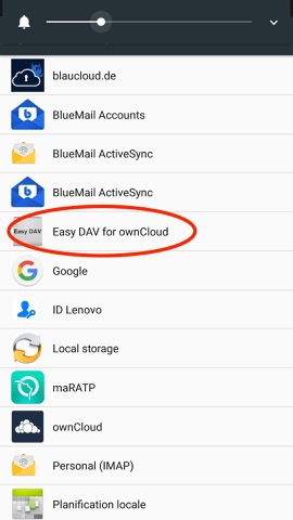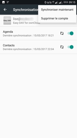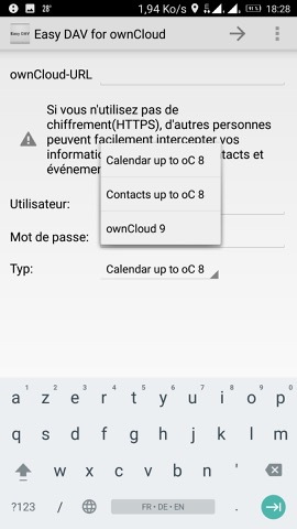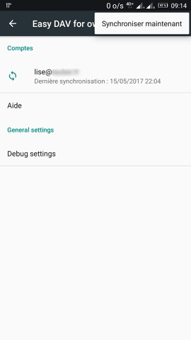 Pour pouvoir récupérer à la fois les données de contacts et d’agenda, j’utilise Easy DAV. Il suffit de saisir l’adresse du serveur, son nom d’utilisateur et son mot de passe pour que l’application se synchronise.