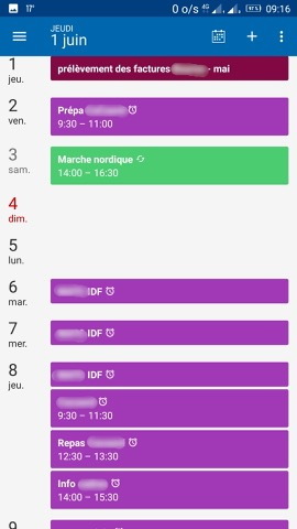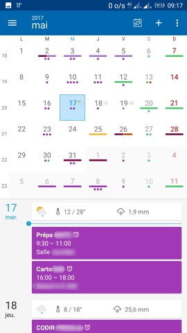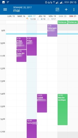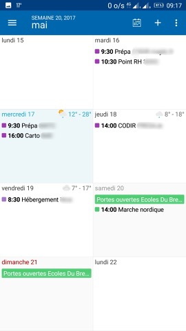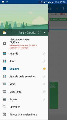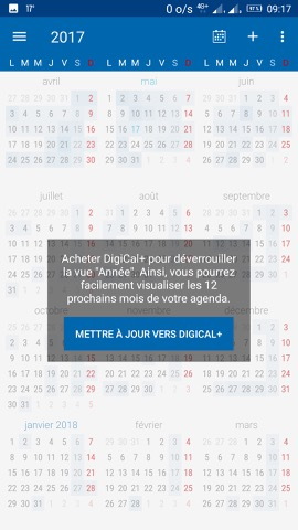 À part ces deux points un peu négatifs, DigiCal offre les fonctionnalités classiques d’une telle appli et le fait bien : affichage par jour, par semaine, sous forme de semainier, par mois. L’affichage annuel n’est possible que dans la version payante.