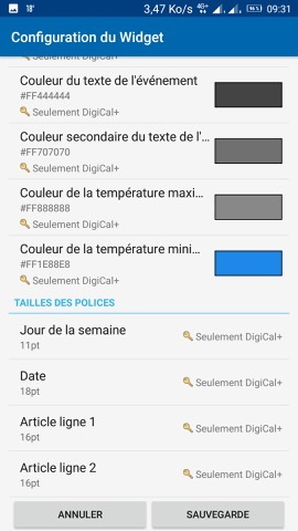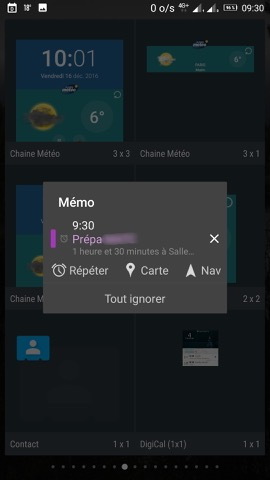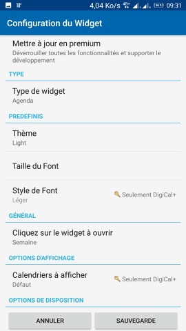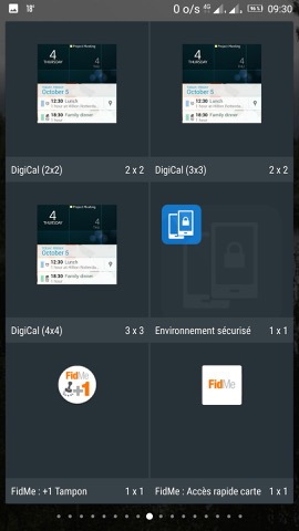 DigiCal, comme de nombreuses applications sous Android, offre différents types de widgets, qui permettent d’afficher son agenda sur un écran d’accueil, ce qui une fonctionnalité très pratique.