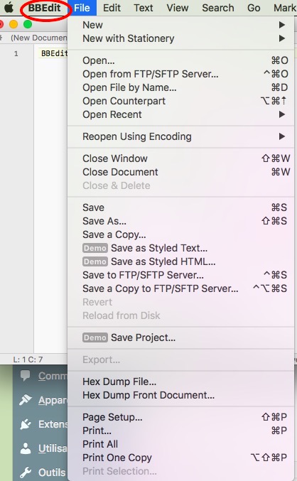 A l’ouverture, les deux applications sont similaires (image 1). Utilisant la même base de registre (pour reprendre un langage Windows 😉 ), les documents récents ouverts avec TextWrangler apparaissent sous BBEdit (image 2). Les options sont sensiblement les mêmes, voire plus nombreuses sous BBEdit (images 3 & 4). L’édition de code est similaire (image 5).
