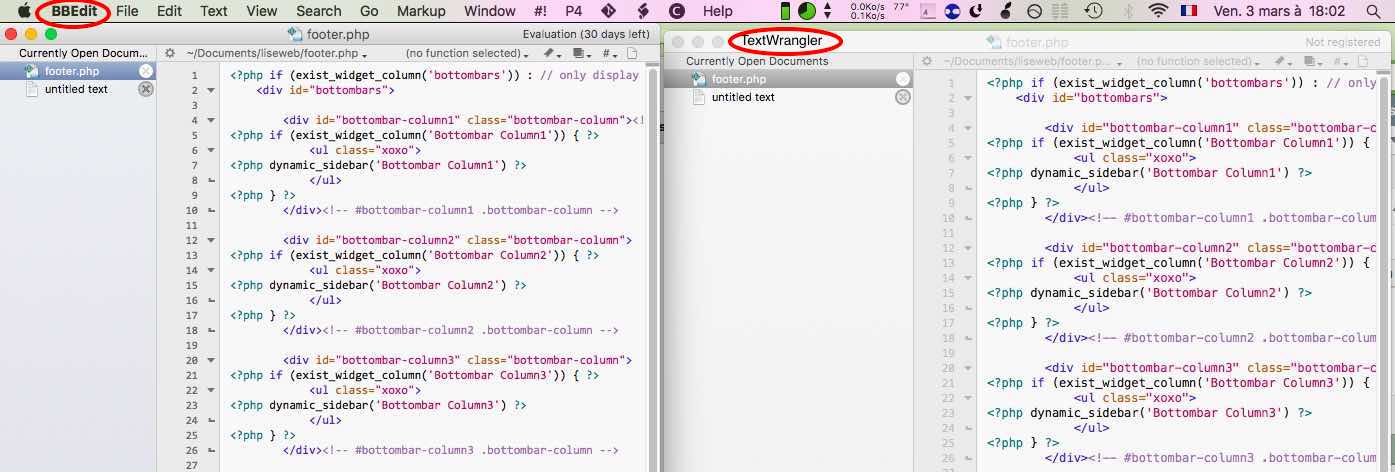 A la place peut-être utilisé gratuitement l’éditeur de code BBEdit. J’ai donc installé cette application sur mes deux Macs.