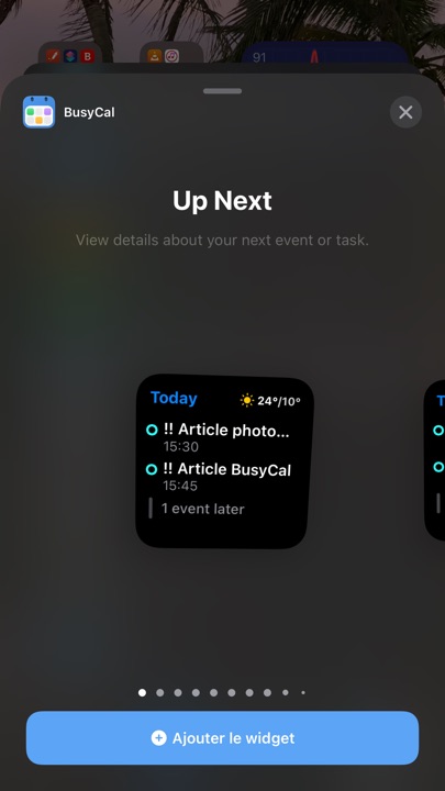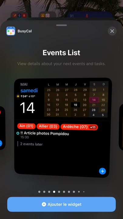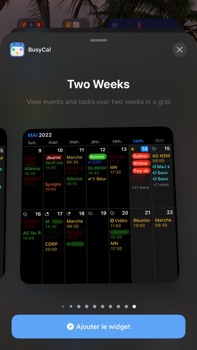Depuis quelques semaines, BusyCal affichent enfin les widgets au nouveau format d’Apple sur son téléphone et sa tablette (2).