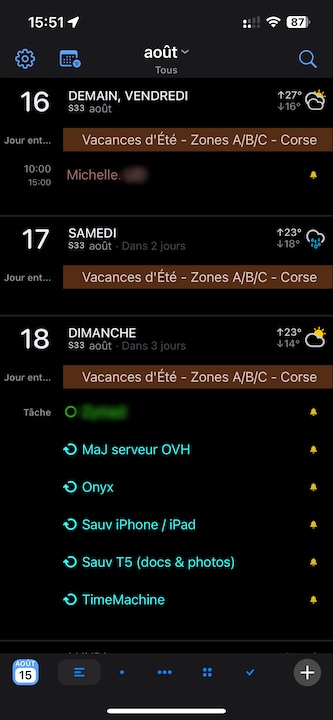 Et bien que BusyCal soit directement synchronisé avec mon serveur Nextcloud, et non lié aux apps de Calendriers et Rappels par défaut, cela semble avoir réglé les problèmes de synchronisation !