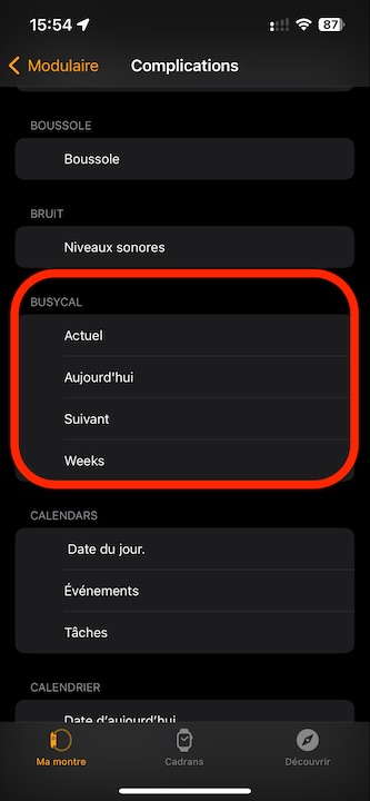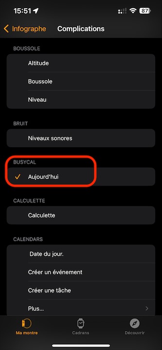 BusyCal sur l’Apple Watch