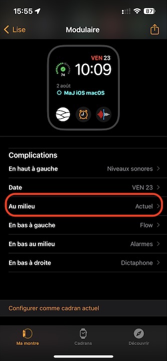 On peut utiliser une complication en bas d’un écran, créer des tâches ou événements directement depuis la montre,