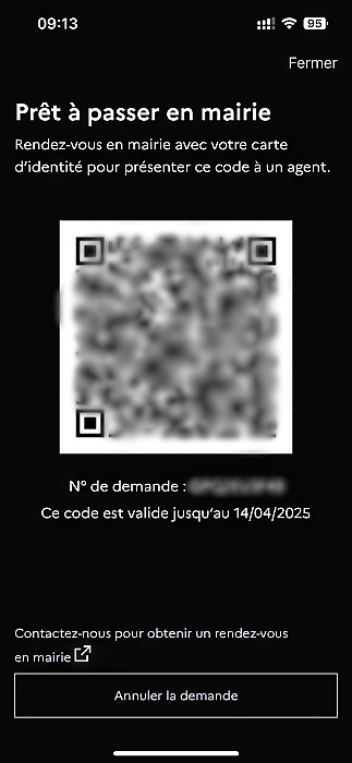 Suite à la réinitialisation de votre code personnel, votre identité numérique n’est plus certifiée. Vous pouvez faire une nouvelle demande depuis l’application. Une vérification d’identité en mairie sera alors nécessaire.
