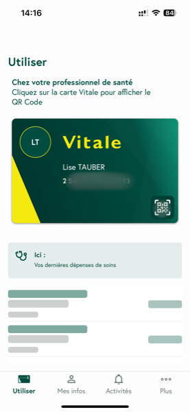 • de visualiser ses dépenses de soins réalisées avec l’application, pas celles qui l’ont été avec la carte physique, on ne dispose donc pas de de l’historique réel de ses dépenses de santé !