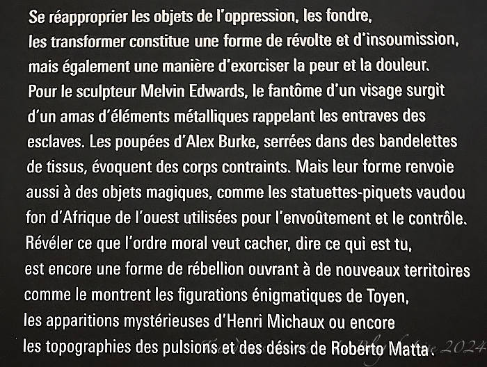 Celle-ci présente une centaine d’œuvres, de différentes origines, réalisées au cours du 20ème siècle jusqu’à nos jours, et montre des luttes et des révoltes. Je n’ai pris que quelques photos, cette exposition, assez particulière, est en même temps attachante !
