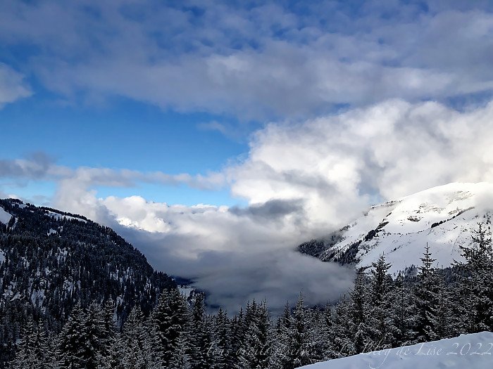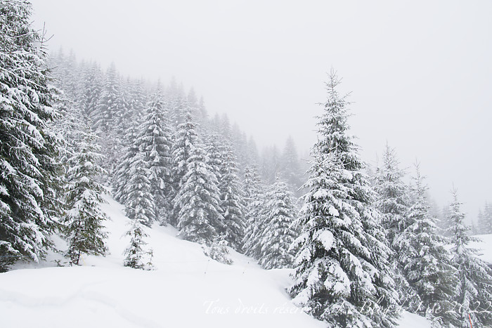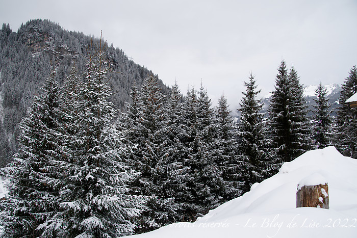 J’ai skié partiellement dans le brouillard le premier jour. Le lendemain, après les chutes de neige, le brouillard descendait trop bas à mon goût, je ne suis pas allée sur les pistes… J’ai fait une balade à Châtel et en ai profité pour sortir le Sony Alpha 7 III !