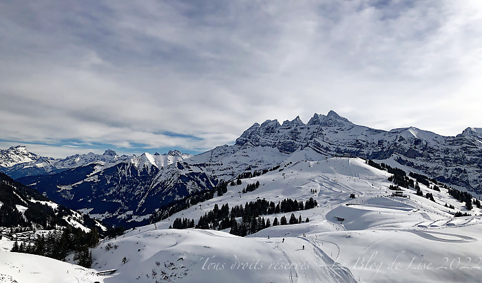 Enfin, le temps clair est revenu ! je suis remontée sur les skis ! de Châtel, j’ai rejoint Avoriaz et Les Crosets (en Suisse)…