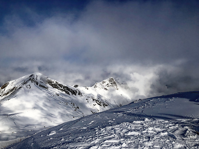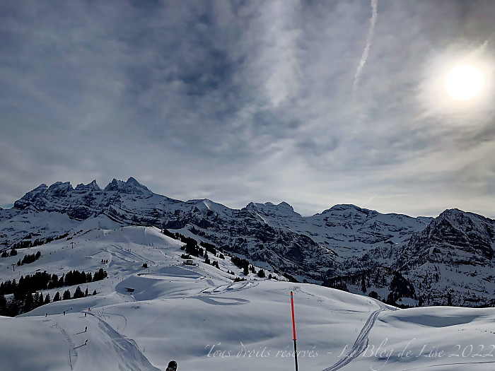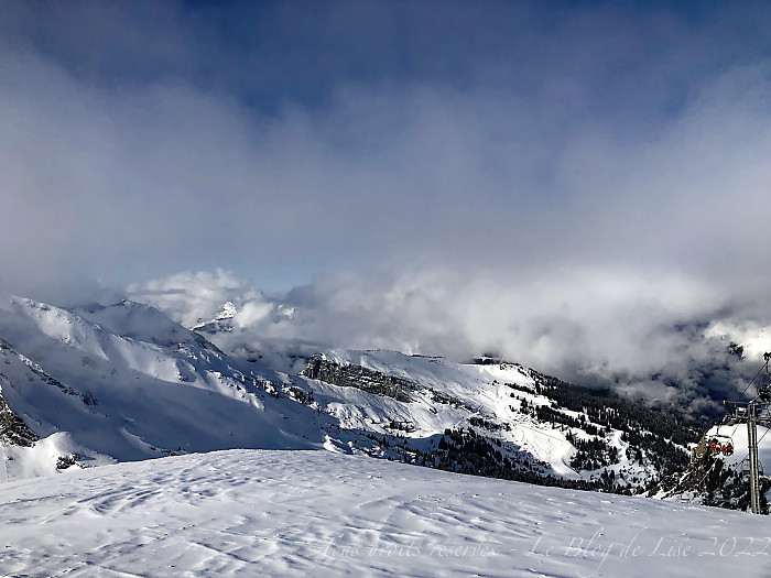 Après une journée de grand beau temps (et de bonne neige !), les nuages et le soleil ont joué à cache-cache… mais laissant une bonne visibilité sur les pistes !