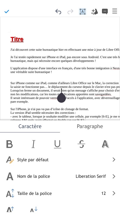 Je l’ai testée rapidement sur iPhone et iPad, pas encore sous Android. C’est une très bonne suite bureautique, avec une interface en français, une très bonne intégration à Nextcloud, mais qui nécessite encore quelques développements !