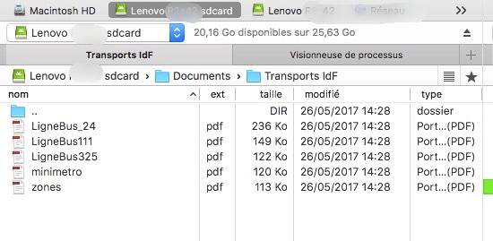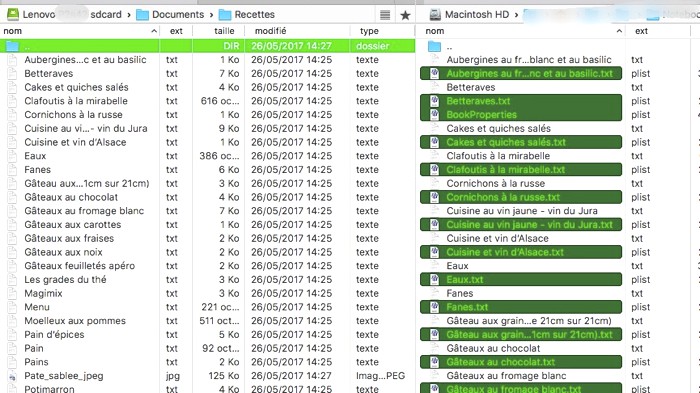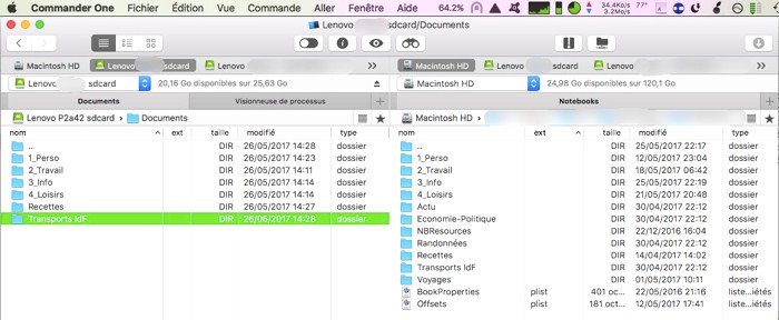 La version commerciale de Commander One permet de transférer facilement des fichiers entre le téléphone et l’ordinateur, que ce soit dans la mémoire interne du téléphone (indiqué sdcard) ou sur la carte SD