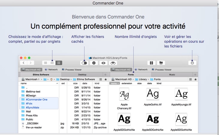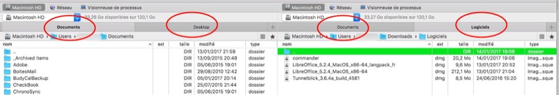 La gestion des onglets est similaire à n’importe quelle application sous Mac OS, et facilite le déplacement ou la copie de fichiers.