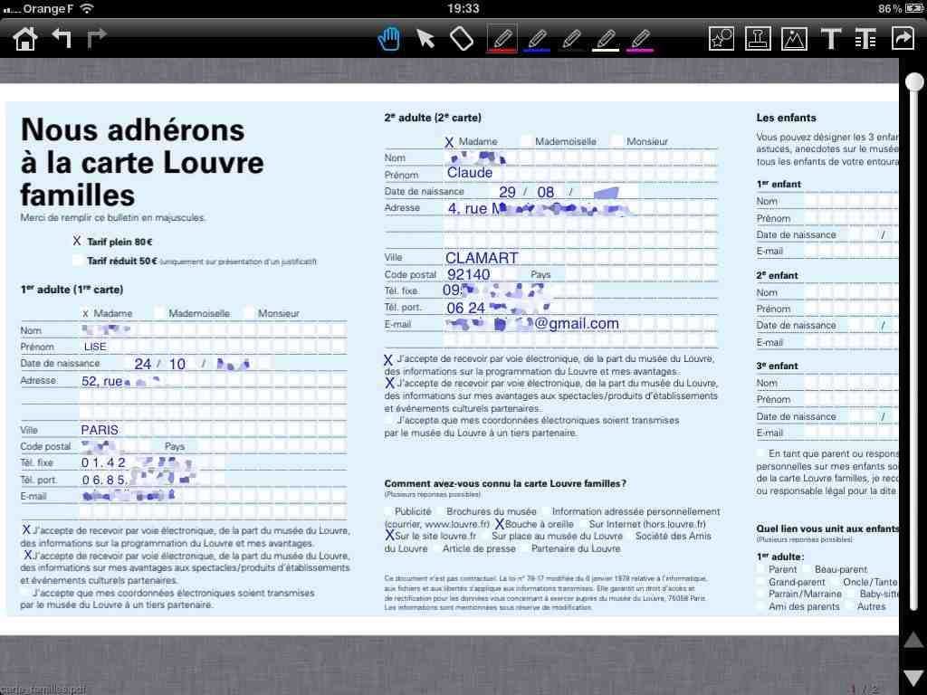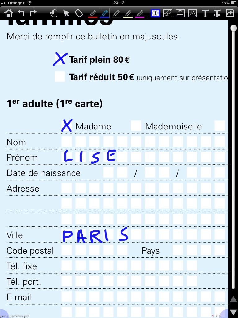 Après avoir téléchargé et converti un fichier avec PDF Converter, j’ai pu remplir les champs d’un document, c’est un peu laborieux, mais le résultat est très bon.