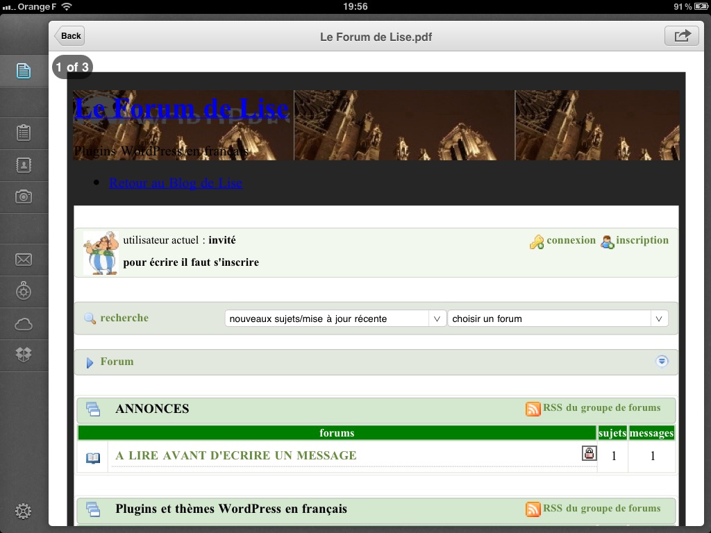 Sinon une APP très simple est URL2Pdf, en français et fait pas mal de choses