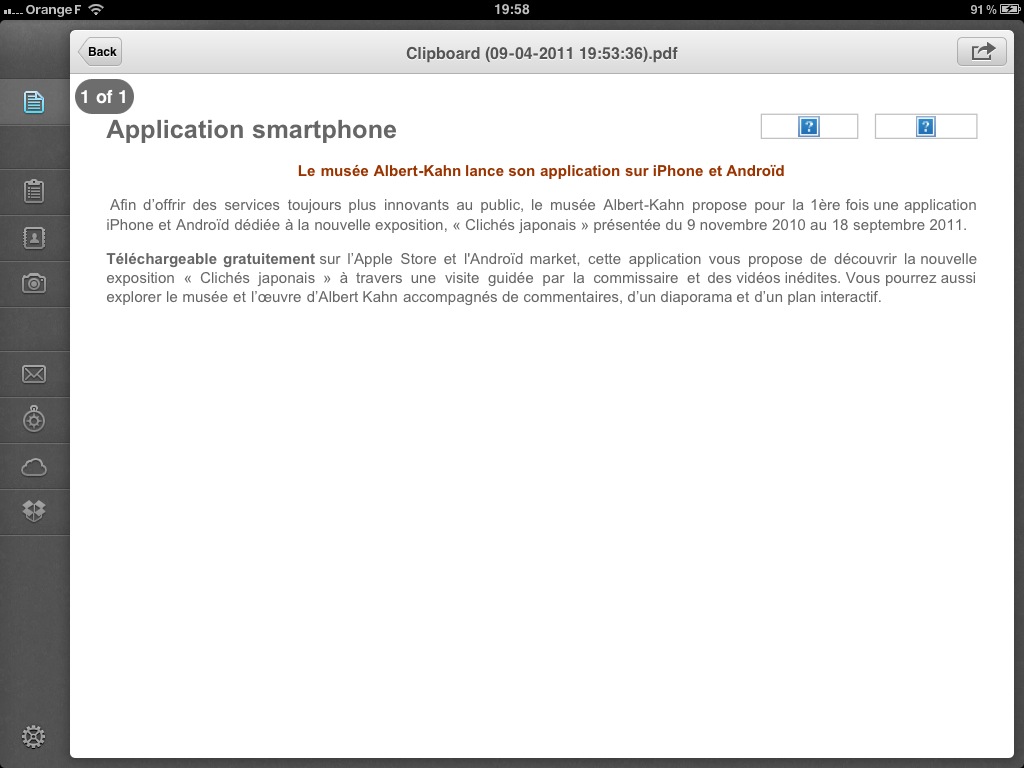 Dans l’attente de pouvoir tester la nouvelle version de PDF Expert de la société Readdle, qui semble être le couteau suisse de la gestion des fichiers PDF, j’ai utilisé neu.Annotate, une des applications gratuites qui sort vraiment du lot. Cette application permet d’annoter, de compléter de façon manuscrite ou avec le clavier des documents PDF.