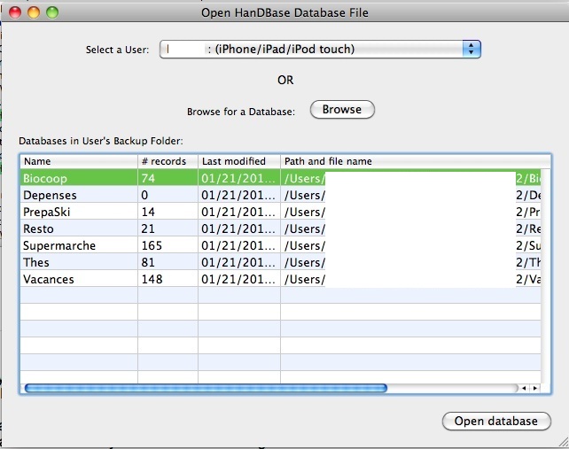 Comme je l’avais décrit lorsque j’ai transféré mes données créées sous Palm OS vers l’iPhone, j’ai pu récupérer mes données depuis l’iPhone en passant par l’application de bureau HandBase Desktop :