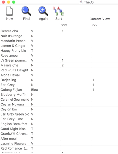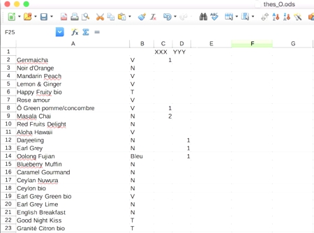 Et voilà, je dispose d’une petite base de données, que je pourrai actualiser facilement en fonction de ma consommation de thés 😉