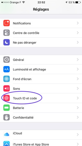 Mais sous IOS10.0.2 iPhone 6+ dans « Touch ID et code » après « Exiger le code »