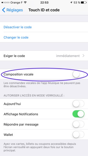 Sous IOS 10 comment peut-on désactiver le contrôle vocal puis qu’il n’y a plus dans « Réglages » – « Touch ID et code » de bouton « Composition vocale »