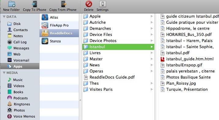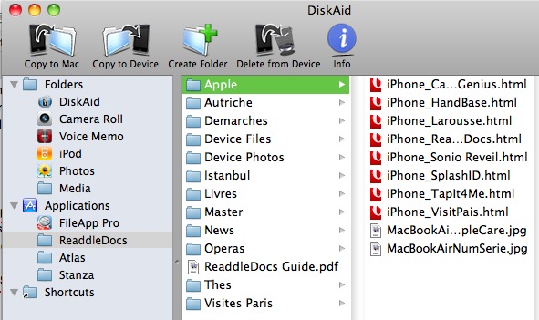 - depuis le passage à iOS4, ne permet plus d’effacer certains fichiers depuis le Mac, ni de copier des fichiers depuis l’ordinateur.