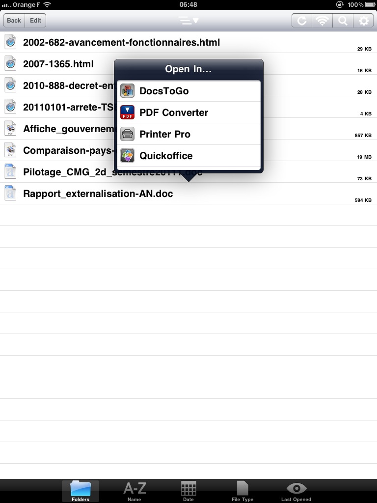 - Pas de création de dossiers sur l’iPad (contrairement à QuickOffice).
