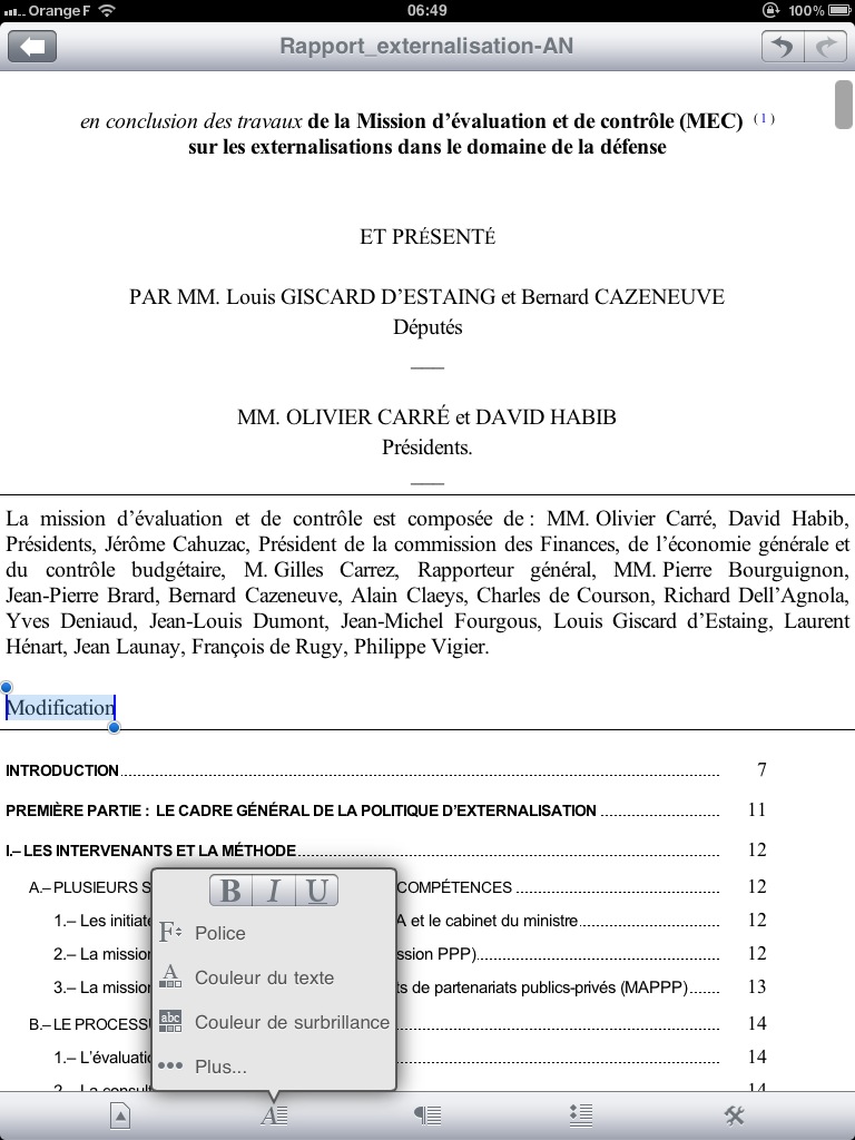 La manipulation des fichiers Word est de mon point de vue la plus aboutie. J’ai ouvert un fichier depuis l’application FilePro et l’ai modifié avec Documents To Go facilement.