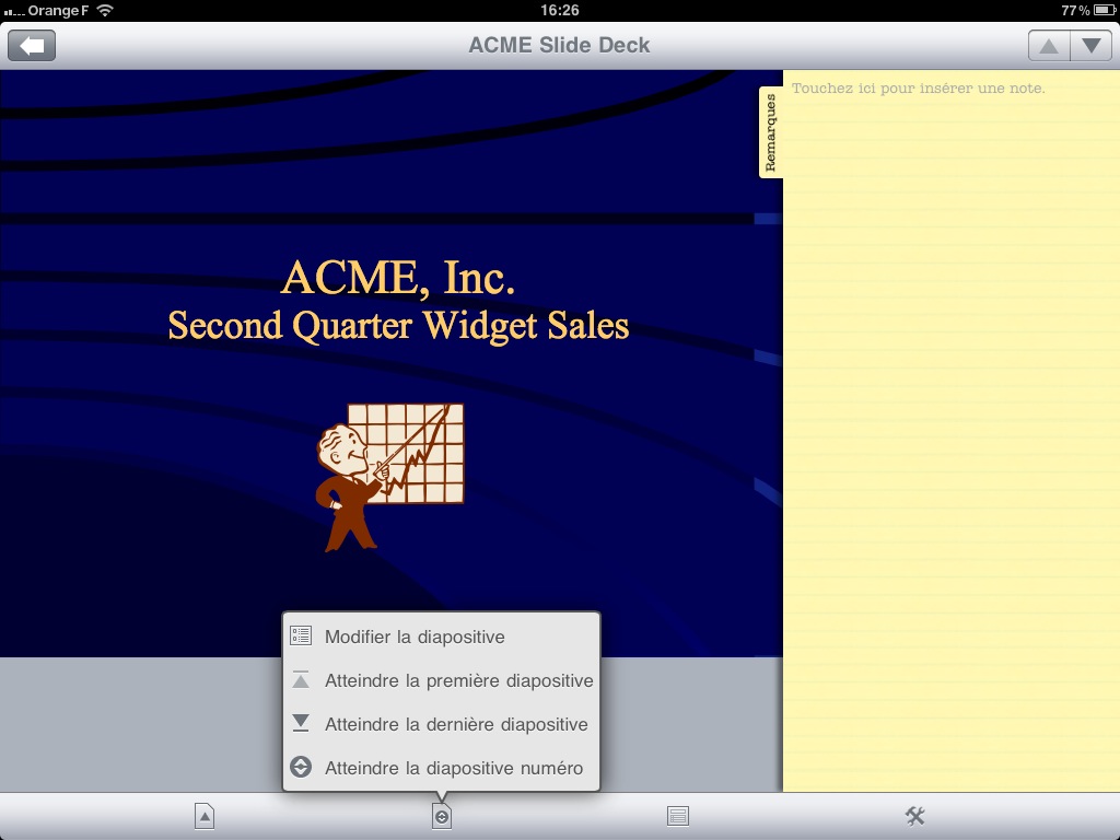 La création des diapositives sur l’iPad est aisée à partir des modèles disponibles. Mais il ne faut pas s’attendre à pouvoir réaliser des diapositives complexes.