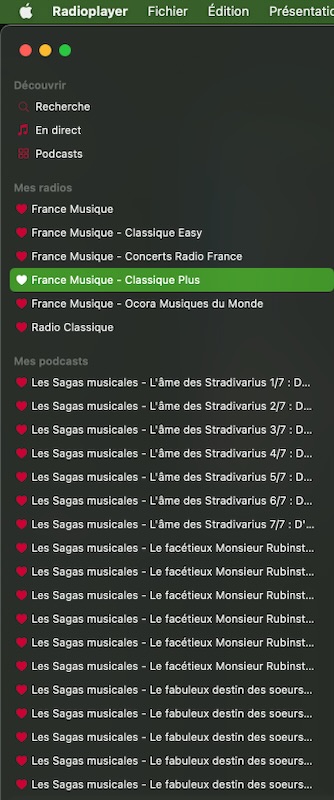 J’ai installé l’application Radioplayer sur le Mac et sur l’iPhone, application dont je parlais dans un article précédent. Cette application, gratuite, permet d’écouter à la fois la radio et des podcasts. Il n’est pas besoin de créer un compte, elle est immédiatement opérationnelle.
