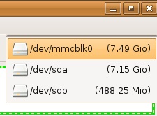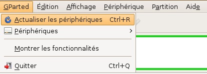 - après l’insertion du media externe, cliquer dans le menu sur GParted > Actualiser les périphériques ;
