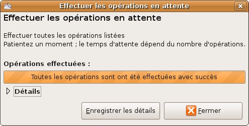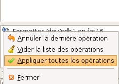 - en bas et à gauche de l’écran, effectuer un clic droit sur Formatter (la faute d’orthographe n’est pas de moi 😉 ) et choisir Appliquer toutes les opérations.
