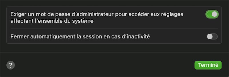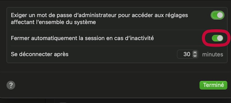 Mais c’est moins vrai depuis déjà plusieurs versions du système d’exploitation ; c’est le cas de la fermeture inopinée de la session en cours lorsque l’ordinateur reste inactif ; jusqu’à présent je ne m’en préoccupais pas trop ! Mais depuis que j’ai remis mes enceintes en service (voir l’article d’hier cité plus haut) et que j’écoute de la musique depuis le MacBook, malgré le paramétrage d’Amphetamine pour empêcher la mise en veille, la fermeture de session de façon impromptue est plutôt gênante !